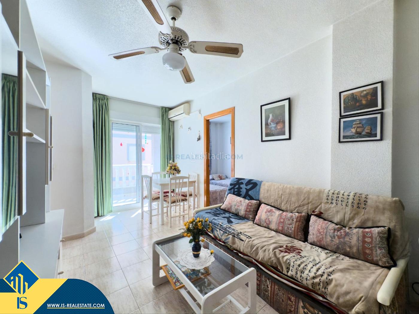 Apartamento de 2 habitaciones con terraza, en la provincia de Alicante, en la localidad de Torrevieja, pedanía de Playa del Acequión, con una superficie total de 58 m², a 200 metros del mar, a 45 kilómetros del aeropuerto de Alicante. La vivienda dispone de terraza, ascensor. Cerca de la propiedad hay tiendas, restaurantes, farmacias, paradas de autobús, gasolineras, zonas verdes, cafeterías