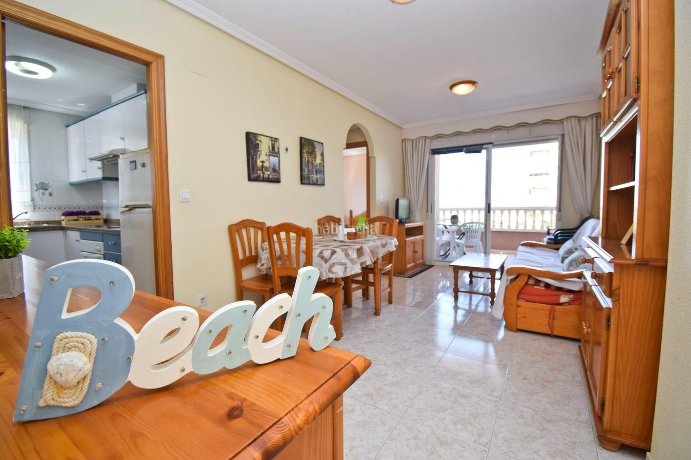 Se distribuye en un salón-comedor muy luminoso. La cocina independiente, equipada con armarios y electrodomésticos, tiene buena ventilación natural gracias a su ventana al exterior. Dispone de dos dormitorios dobles y un baño reformado con ducha.