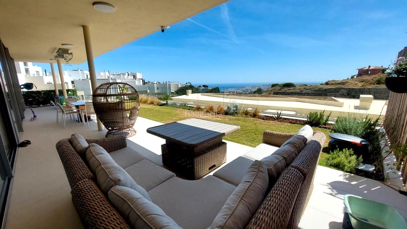 Magnífico, exclusivo y amplio piso en planta baja con ascensor, con toda la comodidad y el lujo. Con Una superficie construida de 312m2, Vivienda 130 m2. Orientación Sur y Suroeste. Año de construcción 2024. Consta de 3 dormitorios dobles con armarios empotrados, con 2 baños completos ( el principal en suite, con vestidor y suelo radiante), un aseo, cocina abierta equipada, salón comedor, terraza cubierta de 59 m2 con vistas al mar y jardín de 79 m2. Todos los dormitorios tienen salida a la terraza. Incluido en el precio 2 plazas de garaje y trastero. Aire acondicionado, doble cristal tipo Climalit, domótica, suelos porcelánicos, etc. La urbanización tiene zonas de relax y coworking, piscina comunitaria. Visita recomendada.