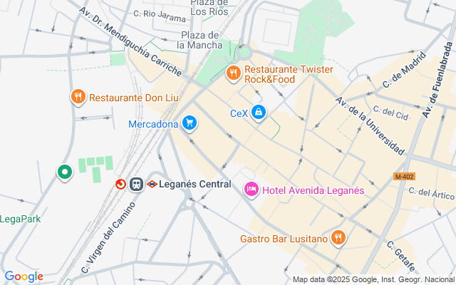con diferentes líneas de autobús: y 486 desde Leganés Central, 497 desde Av. de Fuenlabrada y desde calle del cobre línea 482.