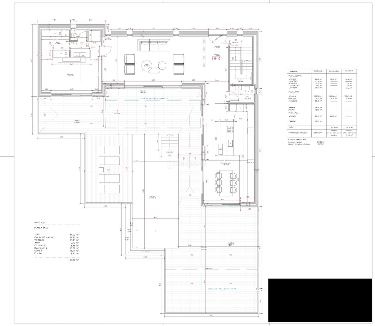 La casa está diseñada con materiales modernos y de alta calidad, ofreciendo una serie de características y equipamiento de primera categoría. La propiedad incluye una gran terraza, perfecta para tomar el sol y disfrutar de las espectaculares vistas. La cocina americana está totalmente equipada con electrodomésticos de gama alta, y el lavadero independiente añade comodidad. Manténgase cómodo todo el año con el aire acondicionado central y la calefacción por suelo radiante.