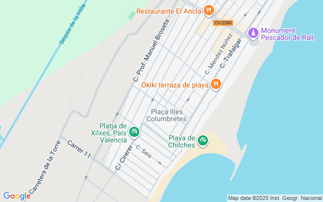 Las playas de Chilches se encuentran a 3,5 km del casco urbano. En el centro del poblado marítimo y del paseo marítimo se encuentra la plaza de la armada española que también sirve como división entre las dos playas: Les cases, más al norte, y Cerezo, más al sur. Ambas playas formadas por arena fina y piedras, están galardonadas con la bandera azul de la unión europea. El amplio paseo marítimo, de reciente construcción, se extiende a lo largo de 1,5 km y es totalmente peatonal. Se trata de un paseo de estilo moderno, con espacios verdes, zonas lúdicas y deportivas, parques infantiles y diversas esculturas entre las que destacan la dedicada al Pescador y el monumento del ancla. También cuenta con un precioso mirador de madera que se adentra en el mar para poder contemplar las maravillosas vistas…