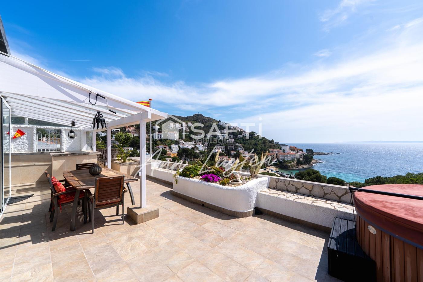 Superficie del ático con terraza: 190m2. Orientación sur con vistas a la bahía de Roses y Canyelles Petites.