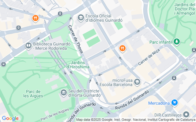 El entorno ofrece algunas de las zonas verdes más destacadas del barrio, como el Parque de las Aguas, los Jardines del Baix Guinardó, los Jardines del Doctor Pla i Armengol y el Parque del Guinardó, con sus bosques, fuentes y miradores. Es una zona ideal para pasear, hacer deporte y disfrutar en familia.