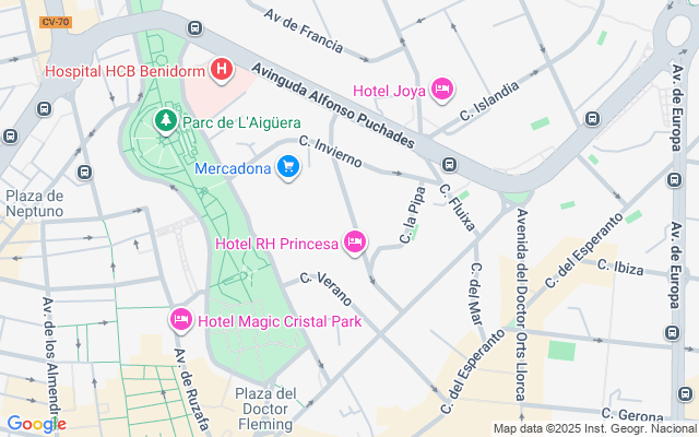 - Ubicación: en zona céntrica de Benidorm, a 800m de la Playa Levante y de la Plaza Triangular. Muy cerca del pintoresco Casco Antiguo de Benidorm.