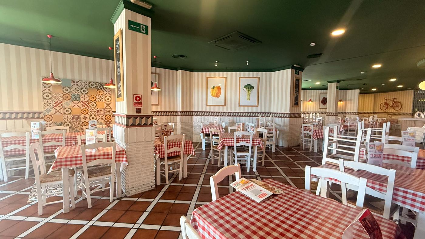 La cocina está totalmente equipada con horno para pizza, fogones, freidoras y espacio de trabajo asi como zona de almacén y cámara frigorífica.