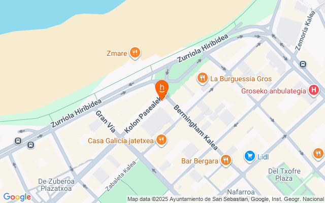 Situado en el barrio de Gros, el más dinámico y el que concentra la mayor oferta gastronómica reciente en la ciudad. Se encuentra además a escasos metros de la Playa de la Zurriola, por lo que puede orientarse a cualquier tipo de clientela potencial (tanto destino como de cercanía)