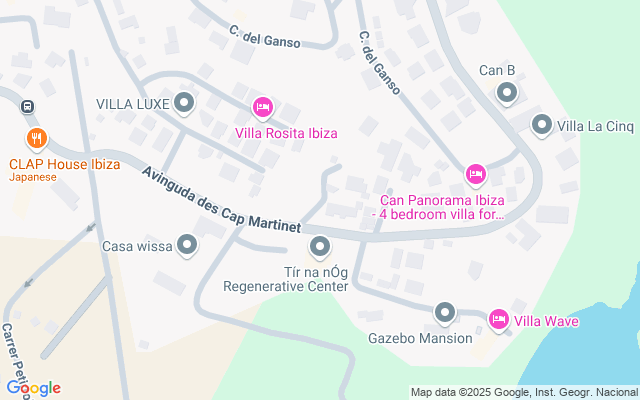 Se compone de una casa principal con cinco habitaciones y una serie de casas confortables repartidas en un jardín rodeado de palmeras exóticas, en el barrio de Cap Martinet. Todas las habitaciones tienen aire acondicionado.
