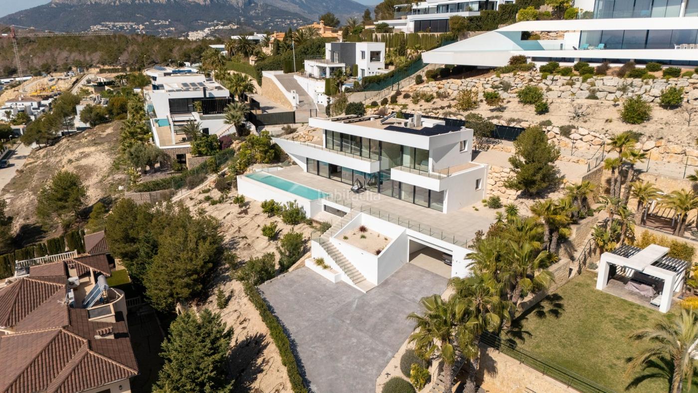 Nueva y moderna villa en venta en Calpe y Benissa, en una parcela de grandes dimensiones con impresionantes vistas panorámicas al mar y al Peñón de Ifach.Esta exclusiva propiedad, construida en 3 plantas con materiales de alta calidad, ofrece una experiencia de lujo incomparable. En la planta semisótano, encontrarás un garaje para dos coches, una zona diáfana de más de 100 m² perfecta para un gimnasio o sala de juegos, y un ascensor que conecta todas las plantas.La planta baja incluye un espacioso salón-comedor, cocina moderna, aseo de cortesía, y un dormitorio principal con vestidor y baño en suite, todo con acceso directo a la terraza y la piscina. La piscina, de más de 15 metros de longitud y con desbordamiento, es ideal para disfrutar del clima mediterráneo.En la planta alta, hay tres dormitorios de invitados, cada uno con acceso a una terraza cubierta, proporcionando un espacio privado y cómodo para todos.La villa está semiamueblada con muebles nuevos y equipada con suelo radiante y aire acondicionado por conductos. Además, cuenta con un jardín mediterráneo con riego automático incluido en el precio.No pierdas la oportunidad de vivir en esta lujosa villa de nueva construcción en una de las zonas más exclusivas de Calpe y Benissa, con vistas espectaculares y acabados de alta gama. ¡Contáctanos hoy para más información!