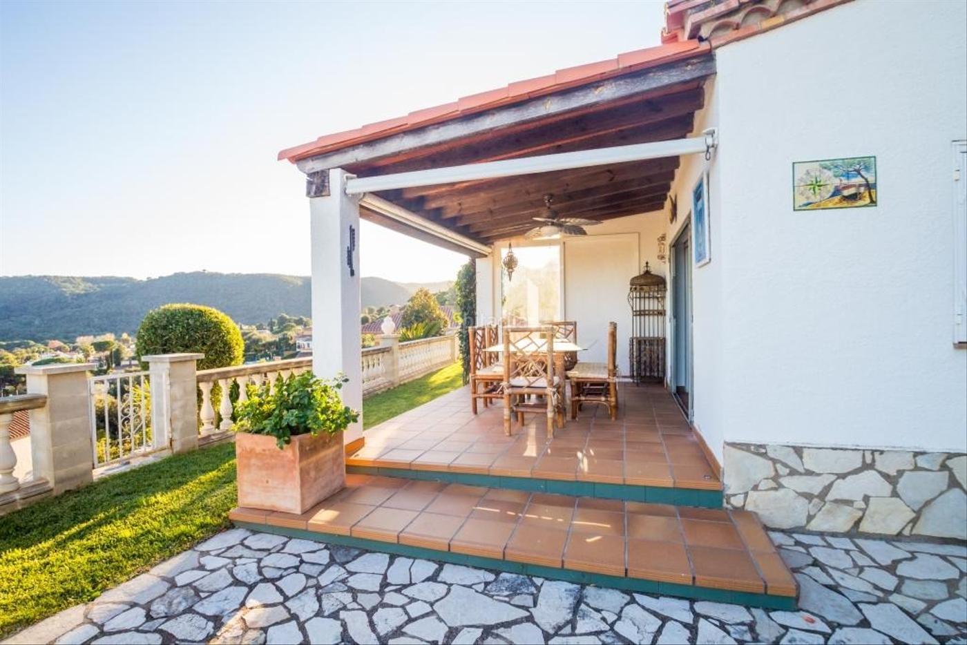 Exclusiva Apiàlia Costa Brava. Exclusiva casa amb jardí piscina i vistes magnífiques, ubicada a la prestigiosa Urbanització Viscondat de Cabanyes, a Calonge! Oportunitat única per a aquells que busquen una llar espaiosa i versàtil. Amb 290 m2 construïts sobre una generosa parcel·la de 1.300 m2. Aquesta propietat compta amb 3 amplis dormitoris, 2 a la planta principal amb un bany complet, i en planta de dalt una altra habitació com a suite amb bany i una terrassa privada amb vistes al mar. L'orientació sud, est i oest assegura llum natural a cada racó de la llar. Entre les característiques addicionals aire condicionat i calefacció centralitzada amb radiadors i de reg automàtic tot el jardí. Gaudeix de moments inoblidables a la terrassa al costat de la cuina d'estiu coberta i la barbacoa exterior, refrescat a la piscina envoltada d'un jardí exuberant que envolta tota la casa. A més, la vivenda compta amb un ampli garatge per a dos vehicles amb accés directe a la casa. No perdis l'oportunitat de visitar aquesta joia a convertir-se en la teva nova llar. Contacta'ns per a més informació!