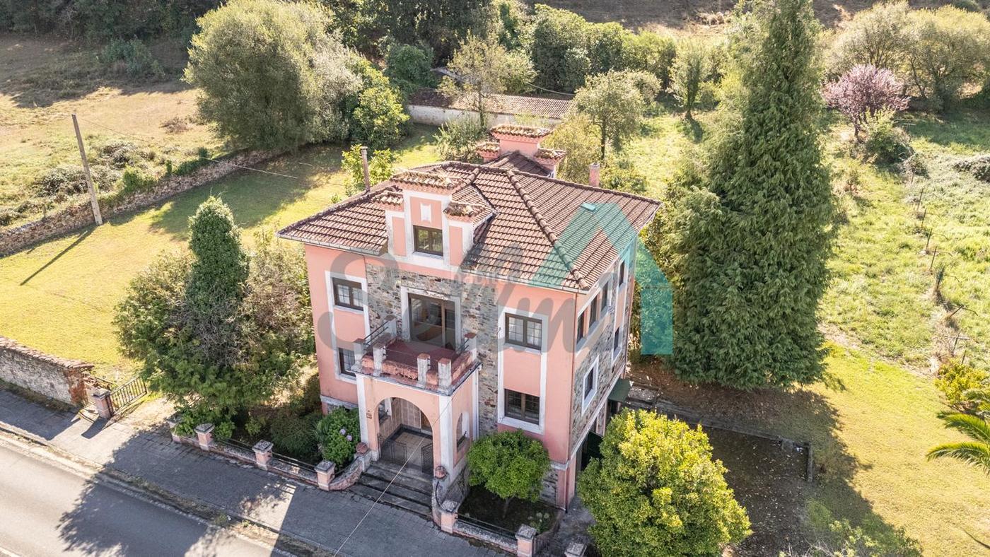 Casa independiente (tipo casa de indianos) en venta situada en Peñaflor, Grado. Se ubica sobre una parcela llana de 8.658 m2, con amplia zona ajardinada, árboles frutales, parrilla y dos edificaciones auxiliares. La finca está totalmente cerrada (muro de piedra y una parte con valla metálica) y tiene varios accesos, todos cerrados con portilla metálica, menos una parte que está cerrada con setos.