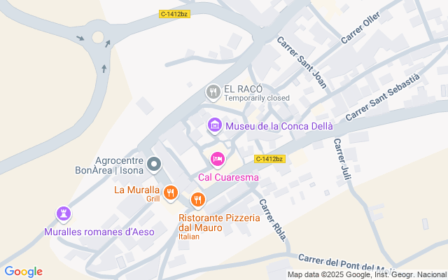 Con un entorno natural espectacular, donde podemos encontrar a tan sólo 10 min, un yacimiento de huellas de dinosaurio de Orcau, yacimiento de huevos de dinosaurio de Basturs (museo de Conca Dellà que se encuentra en el centro de la población de Isona. ), estanques naturales, Lagos cársticos en un entorno paisajístico excepcional.