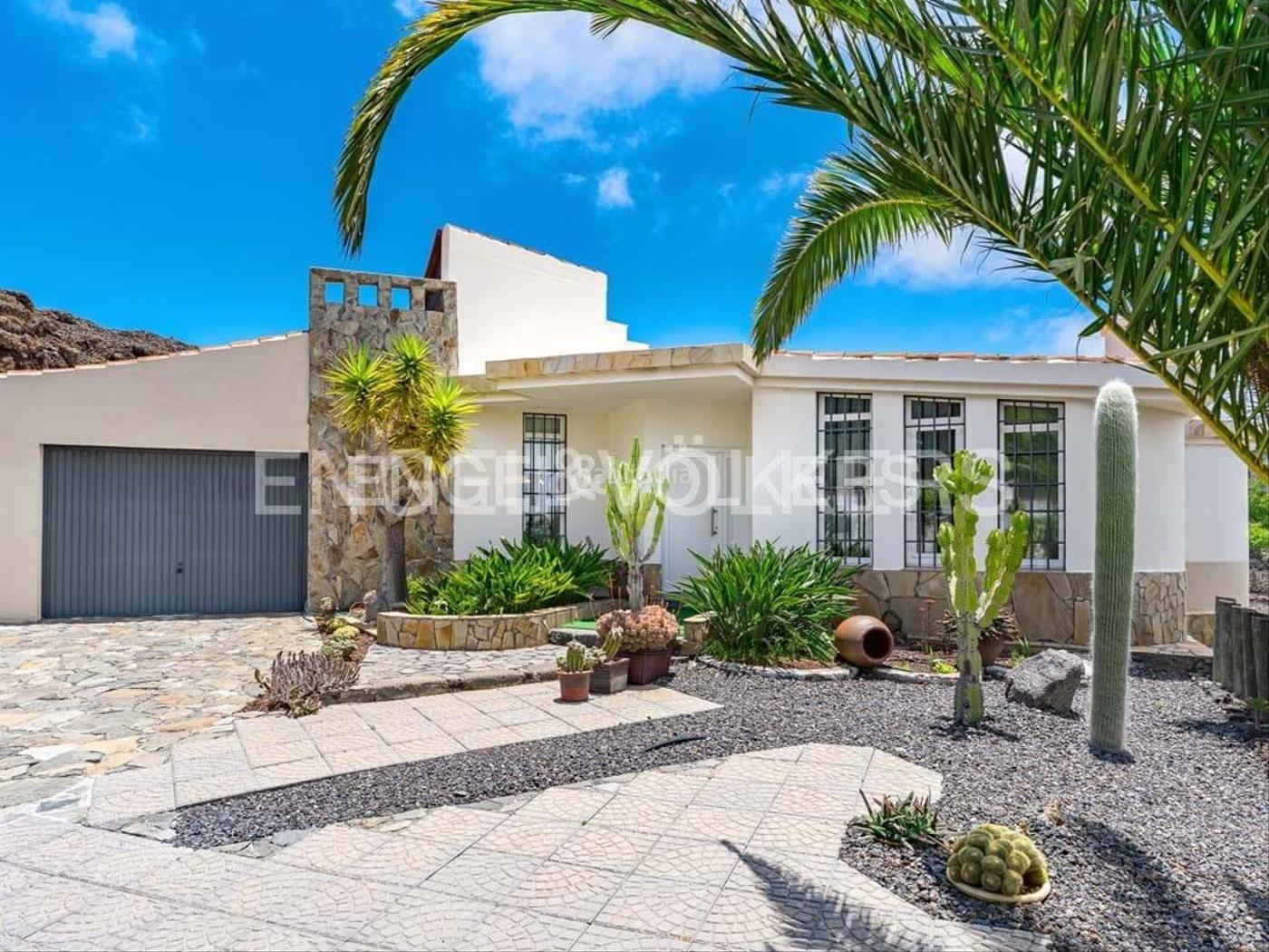 Esta propiedad única se encuentra en el codiciado barrio de Santiago del Teide, más concretamente al final de Arguayo. La ubicación es simplemente fantástica. Usted está directamente en las montañas con fantásticas vistas, donde es agradablemente tranquilo, pero al mismo tiempo están garantizadas óptimas conexiones de transporte. En unos cinco minutos en coche se puede llegar a la TF-1, desde donde no está lejos de las playas, centros comerciales, aeropuerto del sur, etc. La casa principal está situada en una parcela de 700 m² con un camino de entrada privado y puerta de entrada eléctrica. Se divide en dos grandes salones, una cocina independiente, una habitación que sirve de comedor, cinco dormitorios, tres baños, un lavadero y un garaje con espacio para hasta dos coches. Todo está amueblado con mucho gusto y hay muchas ventanas, por lo que todas las habitaciones están óptimamente inundadas de luz. Los materiales utilizados fueron seleccionados y combinados con gran atención al detalle. La terraza de la azotea con fantásticas vistas no puede dejar de mencionarse, al igual que el patio ajardinado. En el jardín encontrará, entre otras cosas, plantas endémicas, todo se riega automáticamente y tiene un aspecto muy cuidado. En el exterior, hay una zona de barbacoa cubierta con terraza. Aquí podrá disfrutar de las vistas del panorama montañoso, el Teide y el mar y así evadirse perfectamente del posible estrés de la vida cotidiana. Además, la zona exterior incluye una cueva y un trastero, así como un cuarto de baño adicional. Si ahora está buscando un chalet moderno en plena naturaleza, lo más probable es que haya encontrado aquí la propiedad adecuada.