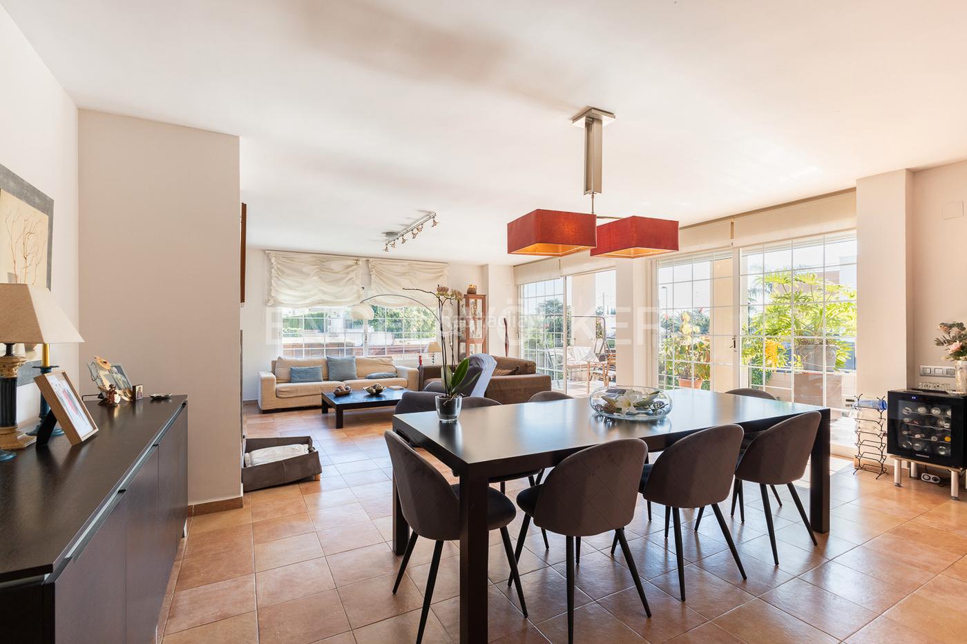 Esta propiedad se distingue por sus características excepcionales, como una terraza ideal para disfrutar de las tardes mediterráneas y un jardín que es un refugio privado de serenidad. La piscina, un refugio refrescante en los días calurosos, ofrece un espacio para relajarse y contemplar la belleza natural que rodea la casa. Un sistema de alarma asegura que la paz y la seguridad sean siempre protagonistas en este hogar.