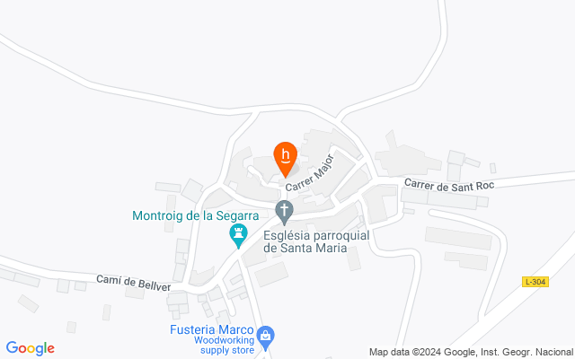 Situada a la plaça del poble, façana de pedra i calefacció de gasoil.
