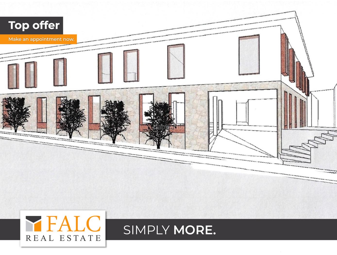 En la planta baja se pueden construir 8 viviendas de 115 m² cada una y en la primera planta 7 viviendas con una superficie habitable de entre 60 y 90 m². En el sótano hay 12 plazas de aparcamiento.