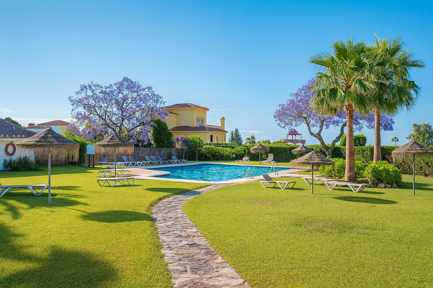 Dispone de dos terrazas cerradas con cristal, ideales para disfrutar durante todo el año. El complejo ofrece zonas comunes con piscina, amplios jardines y aparcamiento para residentes.