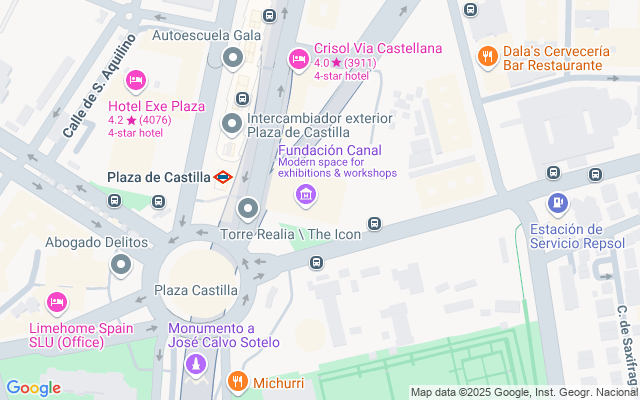 Oficinas disponibles en edificio exclusivo, con una superficie máxima de 515,25 m². Edificio de 24 plantas sobre rasante, cuenta con 4 ascensores situados en el núcleo de comunicaciones. Además de certificación BREEAM El edificio cuenta servicio de conserje, seguridad 24/7, control de accesos. Con acabados de suelo técnico y falso techo; climatización central por conductos. Sistema de detectores de incendios. Luces de emergencia. Puerta de emergencia. Gastos comunidad no incluidos en el precio. Posibilidad de alquilar plazas de garaje dentro del edificio (1 plaza asignada por cada 88 m² de superficie alquilada). Disponibilidad inmediata. Ubicación inmejorable, situada en Plaza Castilla, se encuentra a 12 minutos en coche del Aeropuerto Adolfo Suárez Madrid Barajas, con acceso directo a la A2 y a las M-30, M-11 y M-607. Metro (Plaza Castilla), Bus (5, 27, 147, N24 y N22).