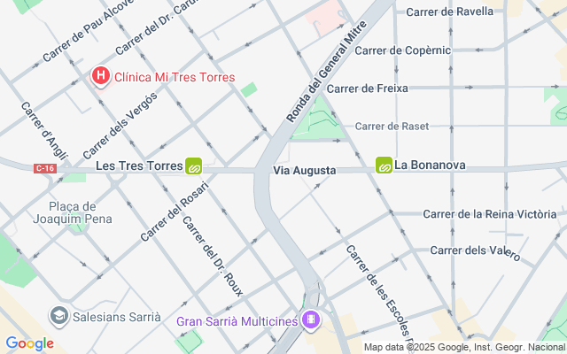 - TRANSPORTE PÚBLICO: FGC-La Bonanova y Les Tres Torres (L6), Bicing y Bus.