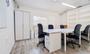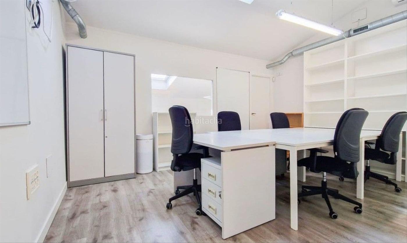 • Oficina individual (13 m²) con 2 mesas, sillas ergonómicas, pizarra y almacenamiento.