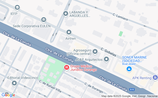 El edificio se encuentra situado en la zona empresarial de la Urbanización La Florida, en el km. 13 de la autovía nacional A-6.