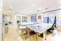 La oficina de mucha luminosidad está orientada a 3 vientos. Se distribuye en una zona de recepción, amplios espacios diáfanos de trabajo operativo, salas de reuniones/despachos conformados por mamparas de madera y cristal, office y baños privativos.
