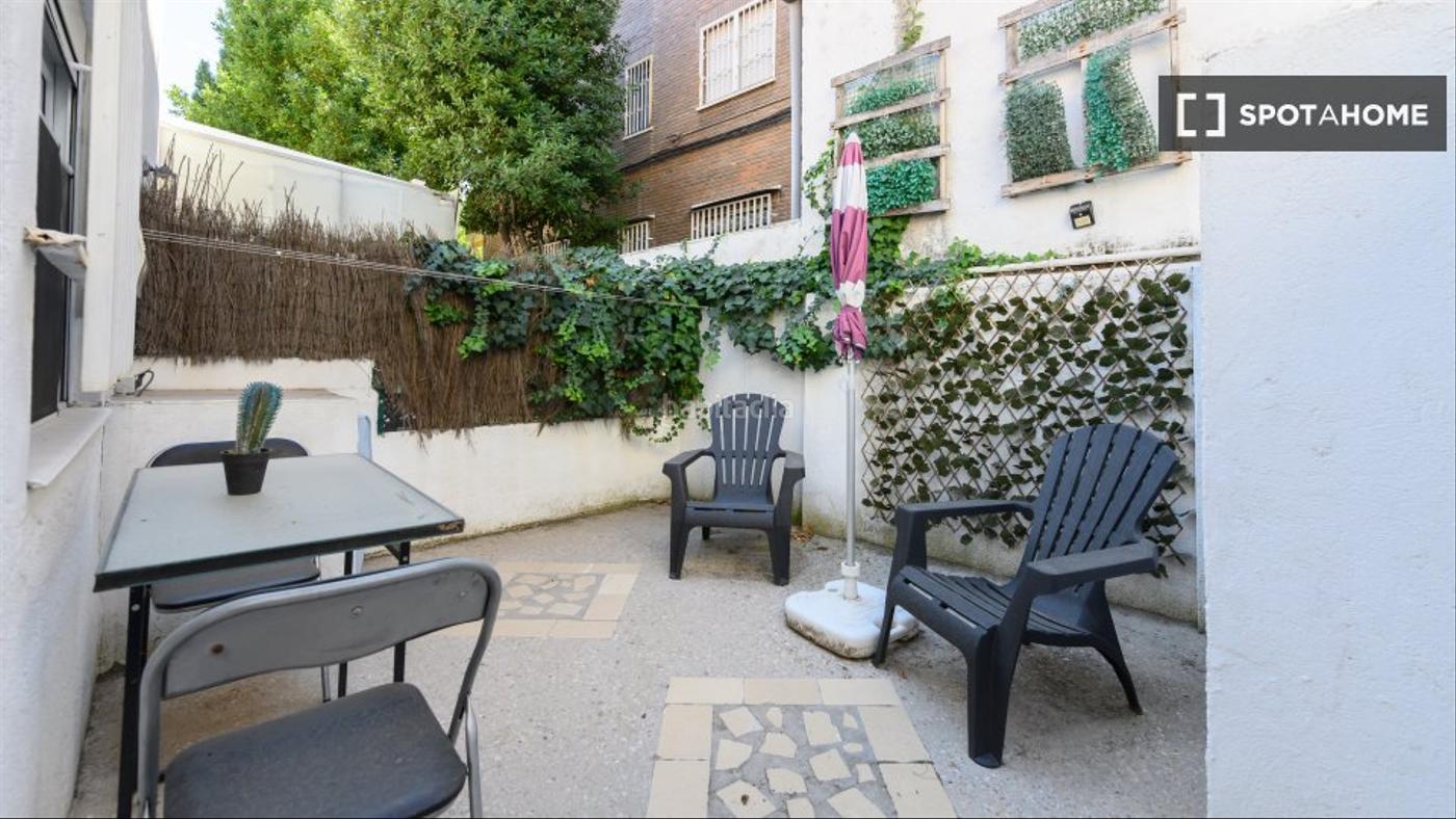 Este estudio en Puerta Bonita, Madrid, ofrece una experiencia de vida cómoda. El apartamento está completamente amueblado e incluye aire acondicionado individual (calefacción y refrigeración). Con una cocina bien equipada, un balcón para relajarse al aire libre y acceso a una lavadora común, es la opción ideal para tu estilo de vida urbano. Ten en cuenta que no se admiten mascotas ni fumar. Además, ha sido verificado por un homechecker de Spotahome, lo que garantiza su calidad y fiabilidad.