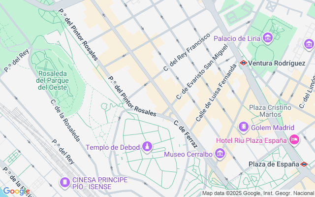 Argüelles es una zona destacada de Madrid, conocida por su fácil acceso a lugares emblemáticos y atracciones turísticas. Muy cerca, podrás visitar el Monumento a Agustín Argüelles, a un corto paseo, junto con otros sitios icónicos como el Cedrus Libani, la Bailarina y el majestuoso Templo de Debod. Haz del corazón de Madrid tu hogar reservando este encantador apartamento hoy mismo.