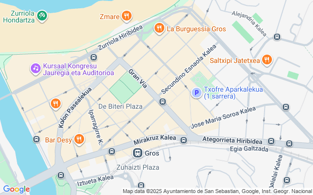 La zona es muy comercial, está cerca del Mercado de Gros, en la zona hay parking público y está próximo a la Playa de la Zurriola.