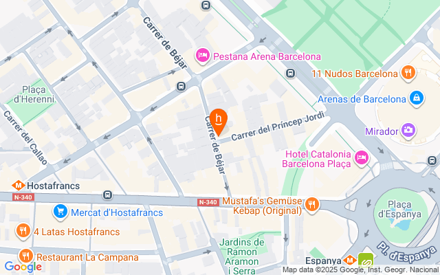 Ubicado en zona peatonal, en la esquina de calle Princep Jordi y Béjar, muy bien comunicado con metro Pl. Espanya, Tarragona y Hostafrancs.